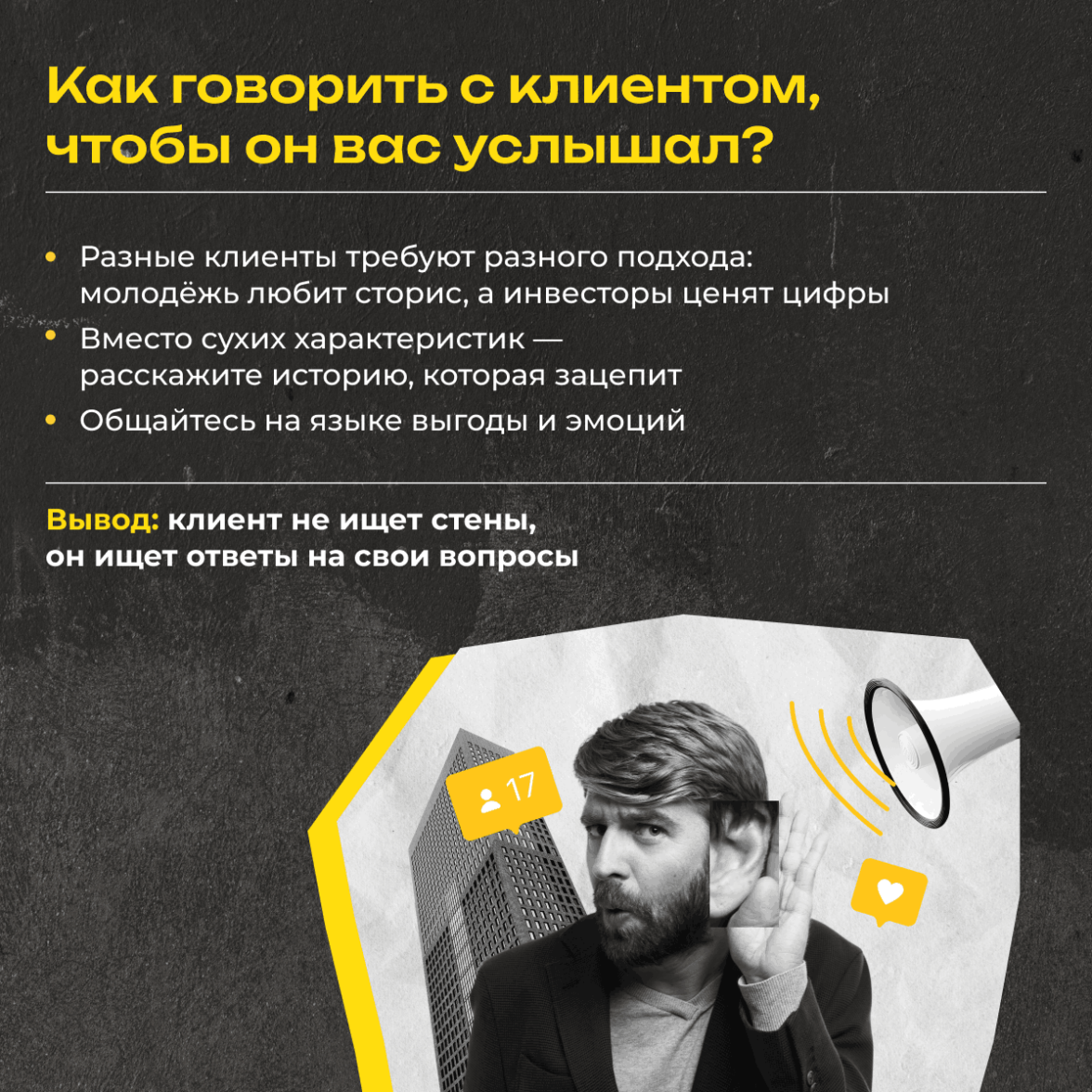 Это: аналитика, чтобы понять, что хочет клиент. Умение говорить на языке своей аудитории. Гибкость, которая позволяет адаптироваться к любым вызовам. Собрали для вас в карточках всё самое важное. Смотрите, вдохновляйтесь и применяйте на практике!