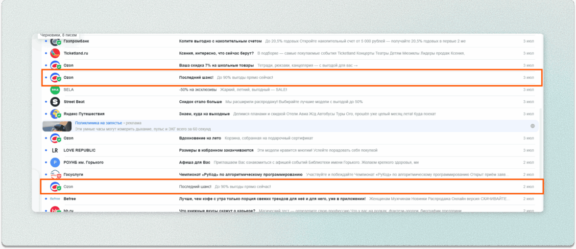 Постоянные «последние возможности». Регулярные напоминания об «истекающем предложении» и непрерывно отсчитывающие время таймеры создают ощущение навязчивой рекламы, которая утомляет аудиторию. Чрезмерный поток сообщений, особенно с постоянным акцентом на срочности, часто приводит к противоположному эффекту и побуждает людей отписываться.