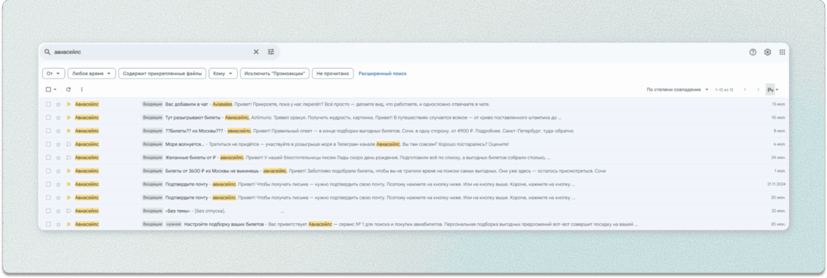 После регистрации пользователя «Авиасейлс» начали сыпать частыми email
