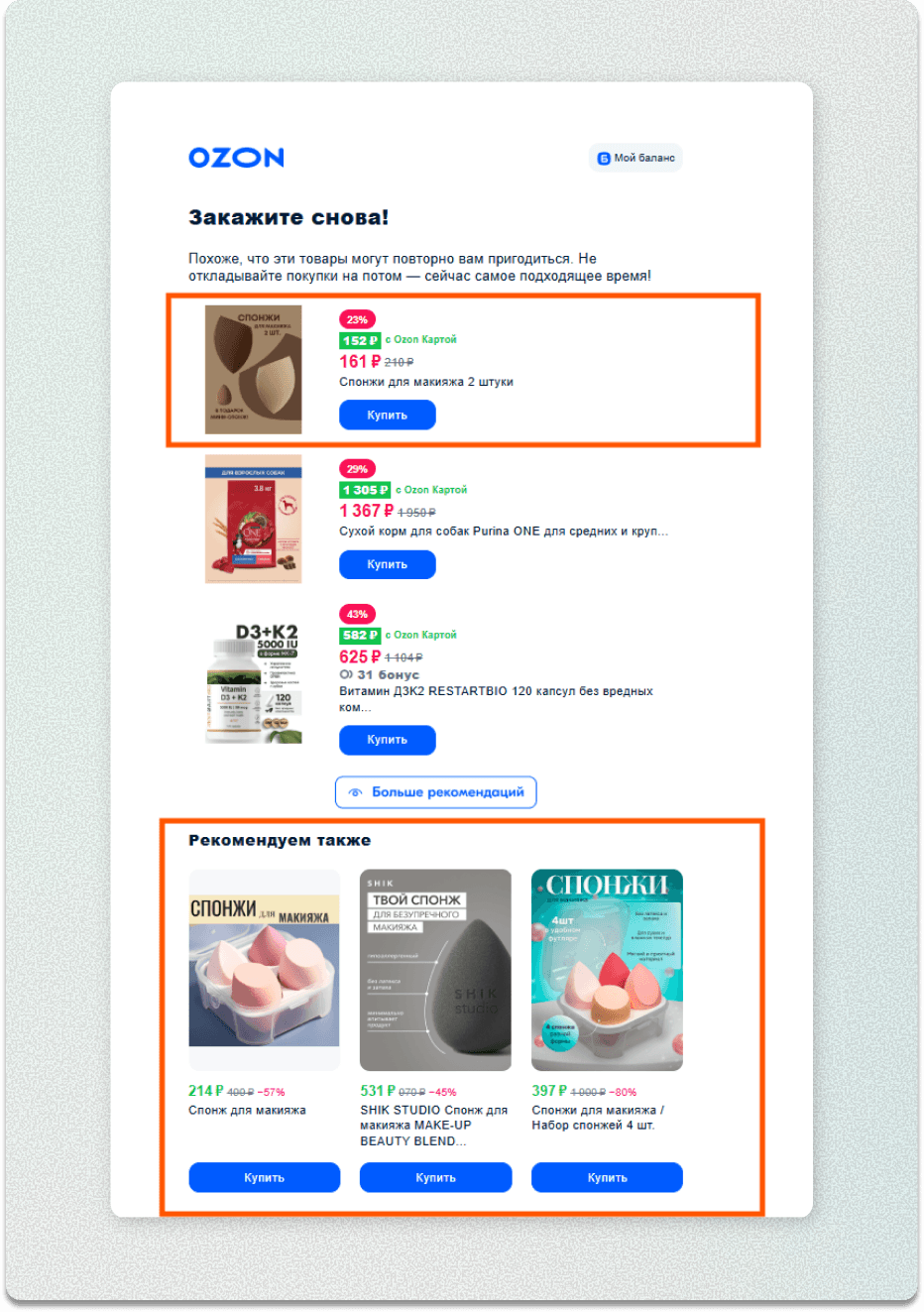 Допустим: «Приветствую, Алексей, вам точно придутся по вкусу эти модели женской обуви». Или: «Это спецпредложение создано именно для вас!» — а далее следует товар, который вы никогда не просматривали или уже приобрели ранее.
