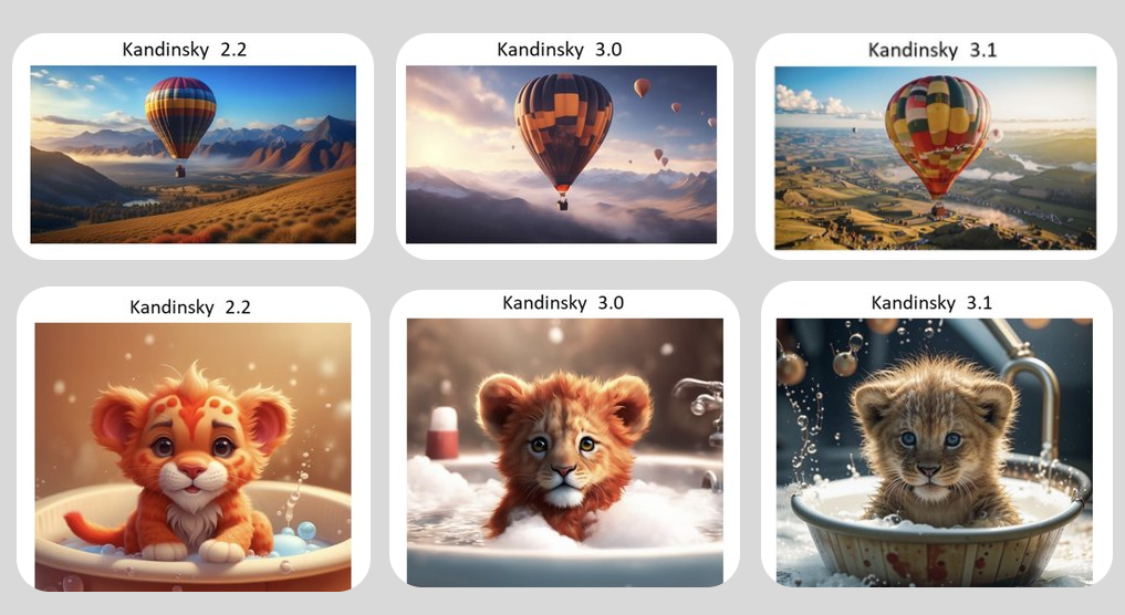 Эволюция нейросетей особенно видна в создании изображений. Если взять несколько картинок, которые были созданы нейросетью Кандинский от Сбера, то мы видим, что теперь появляются все более четкие контуры, добавляются мелкие детали и изображения становятся все более похожи на реальные фотографии.