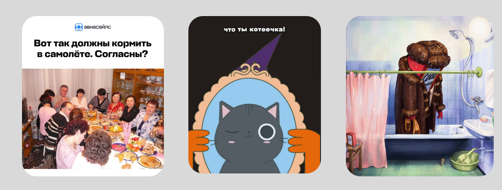 Социальные сети давно вышли из разряда простого общения между пользователями, теперь компании также могут взаимодействовать со своими клиентами, собирать обратную связь, создавать активности и демонстрировать свое позиционирование. Обратите внимание на профиль Авиасейлс или послания Салатов от Белой дачи. Даже у такого простого продукта, как пищевая сода есть интересный контент в соцсетях. Необычный подход не только привлекает внимание, но и увеличивает доверие пользователей. А также создает вирусный эффект, чтобы больше пользователей узнало о бренде.