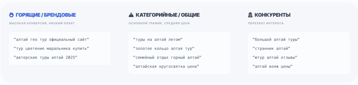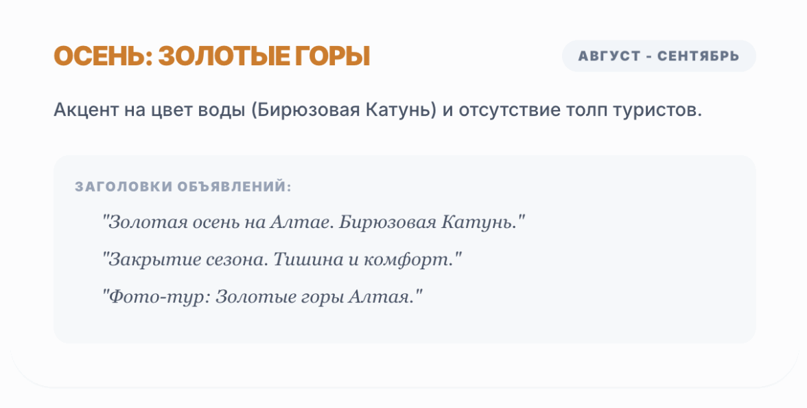 Структура ключевых запросов и продвижение туров на Алтай: как менялись офферы от сезона к сезону.