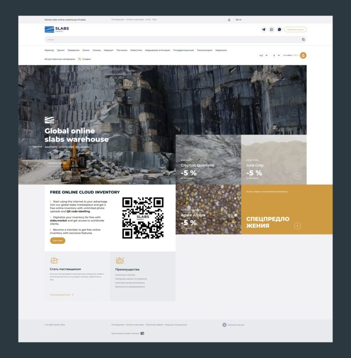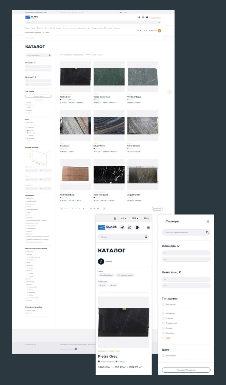 Нам удалось создать масштабный международный маркетплейс, который работает на 6 языках и позволяет поставщикам натурального камня и его покупателям легко, удобно и эффективно взаимодействовать друг с другом. Мы разработали уникальный функционал, который учитывает потребности всех пользователей сайта и помогает им экономить время.