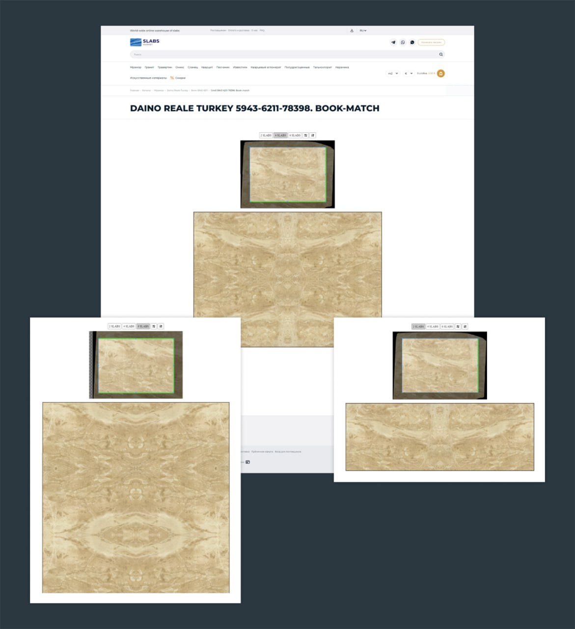 Кроме того, мы реализовали дополнительный функционал, который позволяет заранее просмотреть, как выбранные слэбы будут смотреться вместе, и какой узор будет получаться на стыке после соединения.
