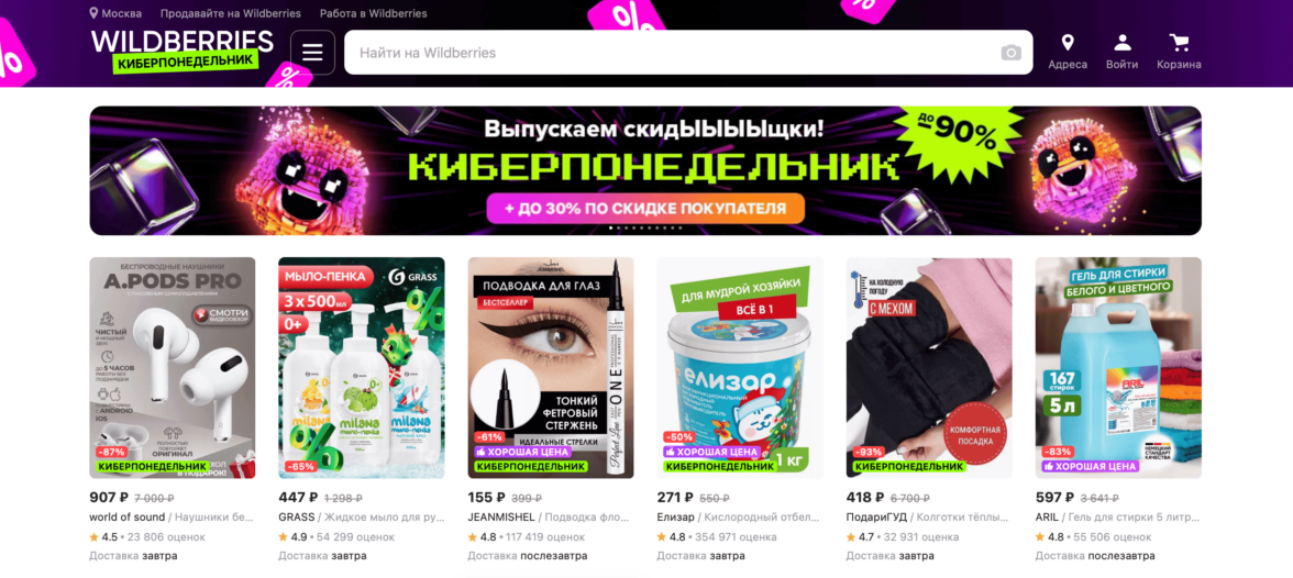 Маркетплейс отличается быстрой доставкой и количеством пунктов выдачи почти на каждом шагу.