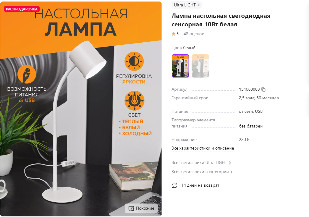 Название и описание, которое подходит под запрос клиента и точно объясняет, что вы продаёте. Например, не просто «лампа настольная», а «лампа настольная белая декоративная». Для описания нужны подробности и детали, которые важны для покупателя: размер, материал, свойства и так далее.