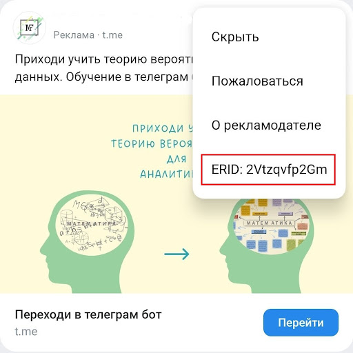 Токен у рекламной публикации выглядит как «erid: xxx», где «erid» — это обозначение токена, а «xxx» — уникальное сочетание букв и цифр.