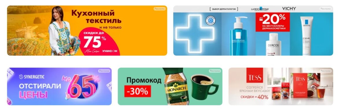 Все эти баннеры — реклама, поскольку каждый из них выделяет один продукт. Следовательно, здесь необходима маркировка