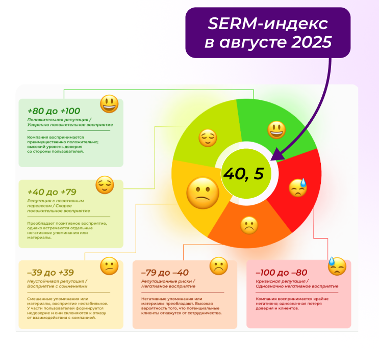 На старте SERM-индекс продукта составлял –2 — показатель слабой репутации.
