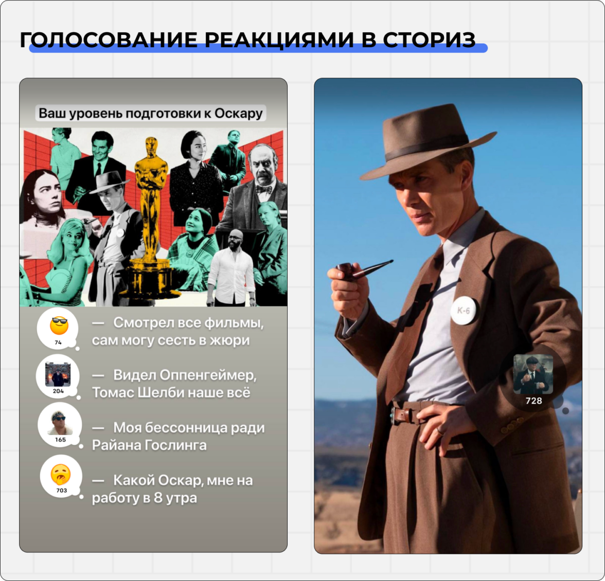 Формат предполагает интерактивный заход до основной публикации, что позволяет создать дополнительный интерес и сделать подачу более нативной и оформленной.