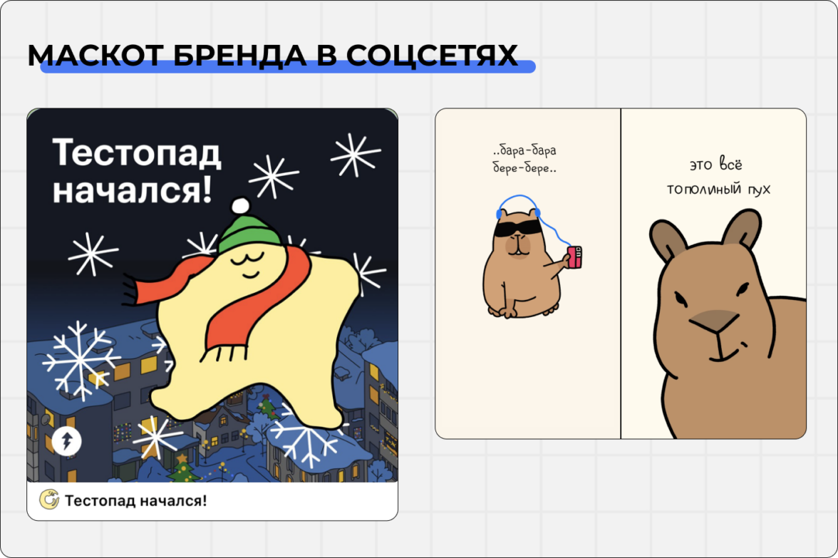 Персонаж, через которого можно вести различные лайны в контенте. У него тоже может быть своё настроение, и он может развлекать, грустить, советовать товары, ругать бренд и так далее.
