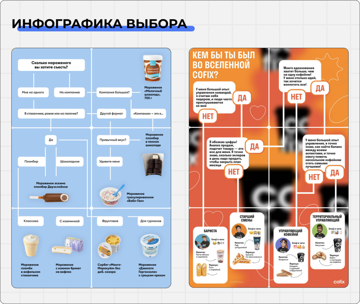 Сейчас в каналах можно наблюдать популярность инфографики выбора. Здесь классно удаётся уместить несколько продуктов и сделать выбор исходя из собственных предпочтений отвечая на вопросы — ДА, НЕТ.
