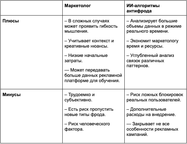 И всё же, анализировать рекламу вручную важно и нужно: так вы сможете найти некачественные площадки или нецелевые аудитории. Но если уровень фрода в нише высокий, то отражать атаки ботов будет труднее — большая часть времени будет уходить на обнаружение и блокировки.