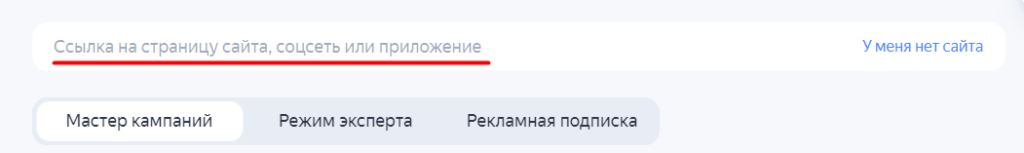 Заходим в аккаунт Яндекс.Директа и добавляем новую кампанию. В настройках выбираем вкладку «Мастер кампаний». Указываем ссылку на страницу сайта и цель.