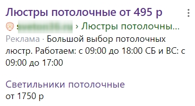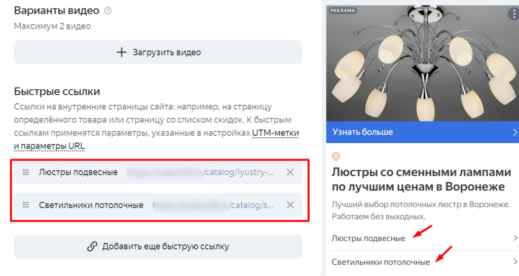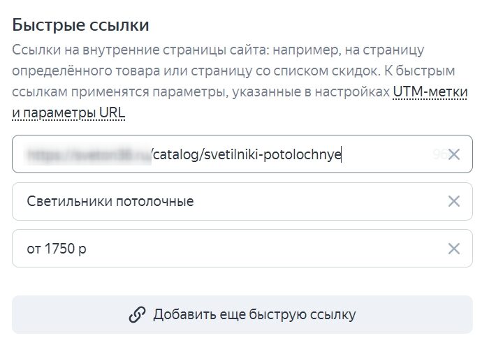 После настройки быстрых ссылок пользователи смогут увидеть их под текстом основного объявления: