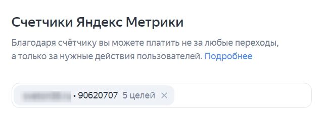 Для этого в кампании в пункте «Счетчики Яндекс.Метрики» выбираем недавно добавленный в Метрике счетчик: