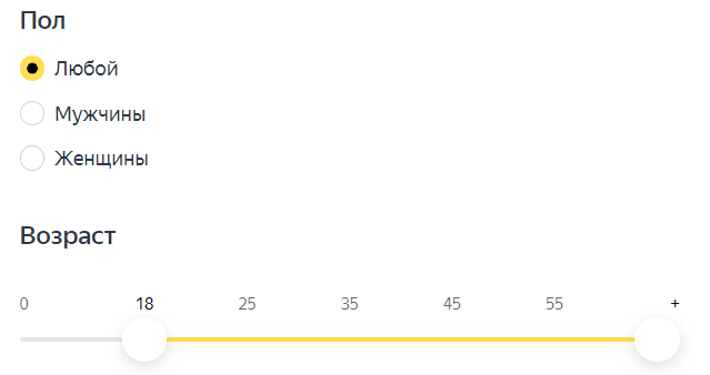 Пол и возраст аудитории. Покупать светильники могут люди любого пола и возраста, поэтому не будем ограничивать таргетинг.