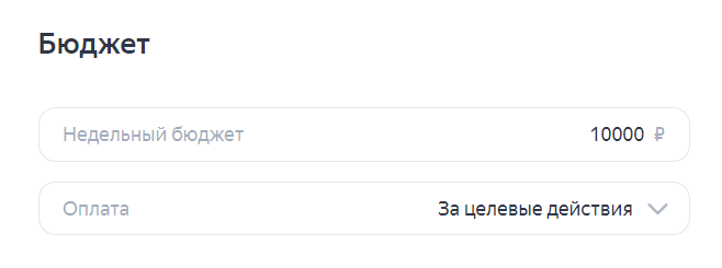 • Указываем недельный бюджет — 10 000 р в неделю.