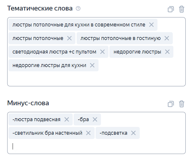Ниже задаем минус-слова.