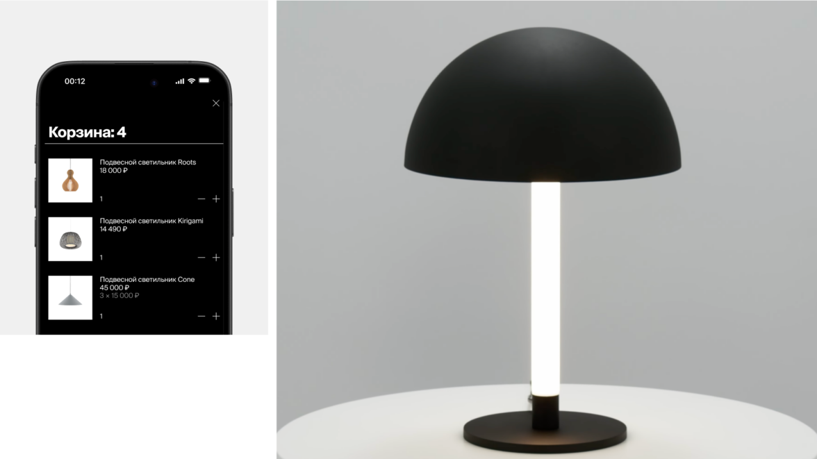 Корзина, как финальный шаг, обретает уникальную коммуникацию за счет смены фона на темный. Мы приглушаем свет, чтобы пользователь сверился с каждым решением — без спешки, в режиме «slow mode».