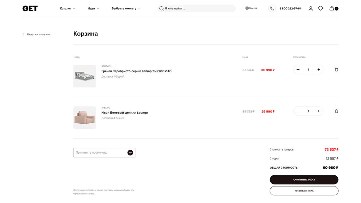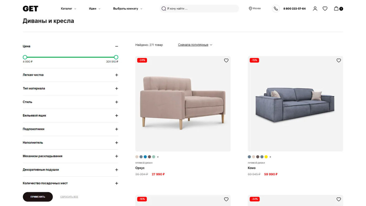 Вместе с командой интернет-магазина GET.ru мы объединили функциональность, дизайн и вдохновение, чтобы помочь покупателю мебели создать интерьер своей мечты.