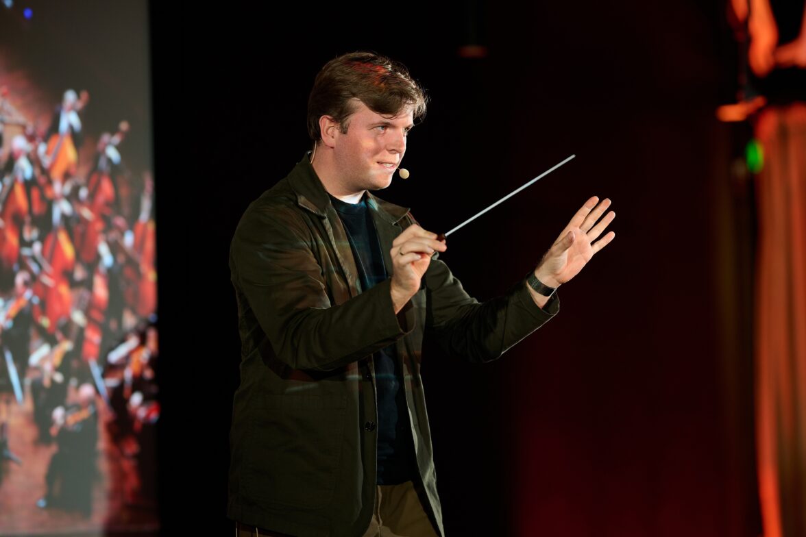 Программа началась с иммерсивной лекции «Команда как оркестр» от мотивационного спикера и популяризатора классической музыки, альтиста, солиста ведущих оркестров России Сергея Бурлаки. Он провел параллель между дирижированием и лидерством в бизнесе, показав важность гибкости и адаптивности. Затем теория перешла в практику: участники стали частью импровизированного оркестра и под аккомпанемент Сергея исполнили сюиту Георгия Свиридова «Время, вперед!». В завершение каждому вручили дирижерскую палочку в память о коллективном творчестве и объединяющей силе музыки.