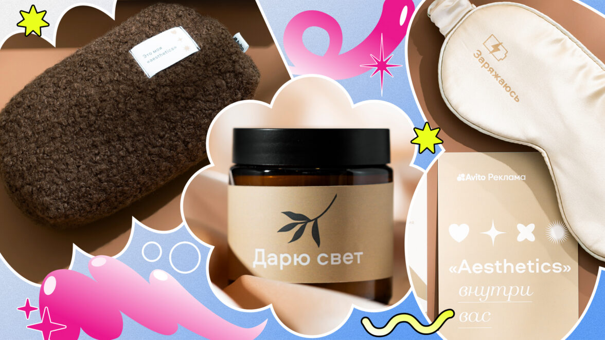 Подарочный сет на 8 Марта для сотрудниц компании Avito. Это «подарок-ресурс»: нежный бокс с набором для отдыха, ухода за собой и создания внутренней гармонии со своей атмосферой. Мы сшили косметичку из меха «Долли», а маску создали из нежнейшего натурального шелка — особенные материалы добавили в пак приятных тактильных ощущений, также передавая посылы концепта — мягкость, тепло, заботу. Основные копилайны на предметах касаются их назначения, крупный логотип присутствует только на открытке к подарку.