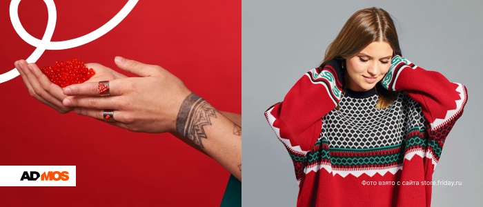 В России тоже любят покреативить. В фаншопе телеканала «Пятница» можно купить мерч проектов «Четыре дачи», «Пацанки», «Кондитер», «Евгенич», а к Новому 2023 году ТВ-бренд выпустил эксклюзивную коллекцию украшений «Пятница-Салатница!». В праздничную коллекцию вошли кольцо с красной икрой, кольцо с чёрной икрой, кольцо с горошинкой из оливье и подвеска со шпротами.