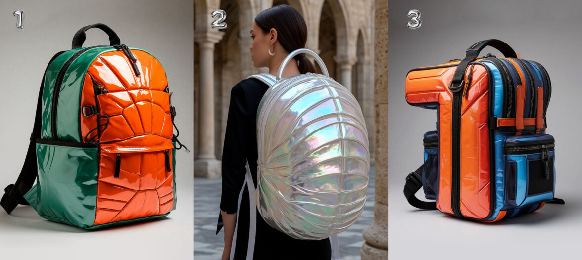 В целом, в нашей отрасли возможности довольно обширные, но все сложности сильно поднимут цену за единицу продукции и увеличат сроки изготовления. В данном случае на фото использован материал, напоминающий лакированный кожзам. Что-то похожее придется заказывать в Китае, возможно, дополнительно выкрашивать. Что касается модели в виде цифры 1, то она непригодна для использования в жизни, рюкзак будет упираться в голову носящему.