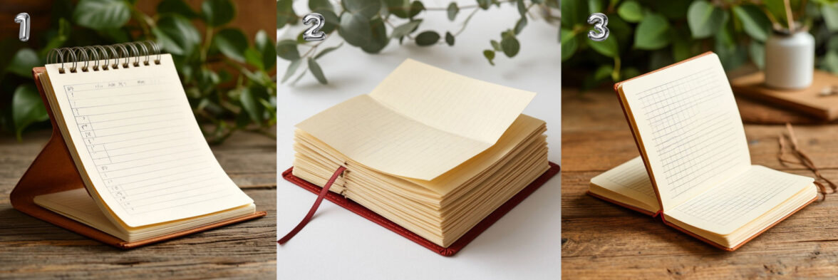 На второй картинке вижу что-то вроде стикеров. Непонятно, как они крепятся и будет ли этот ежедневник закрываться. На третьей картинке нечто похожее на двойной блокнот с разными блоками. Такой у нас есть в каталоге, но он достаточно дорогой и по опыту высоким спросом не пользуется. На первой картинке получилась довольно интересная модель, было бы интересно разработать такую.
