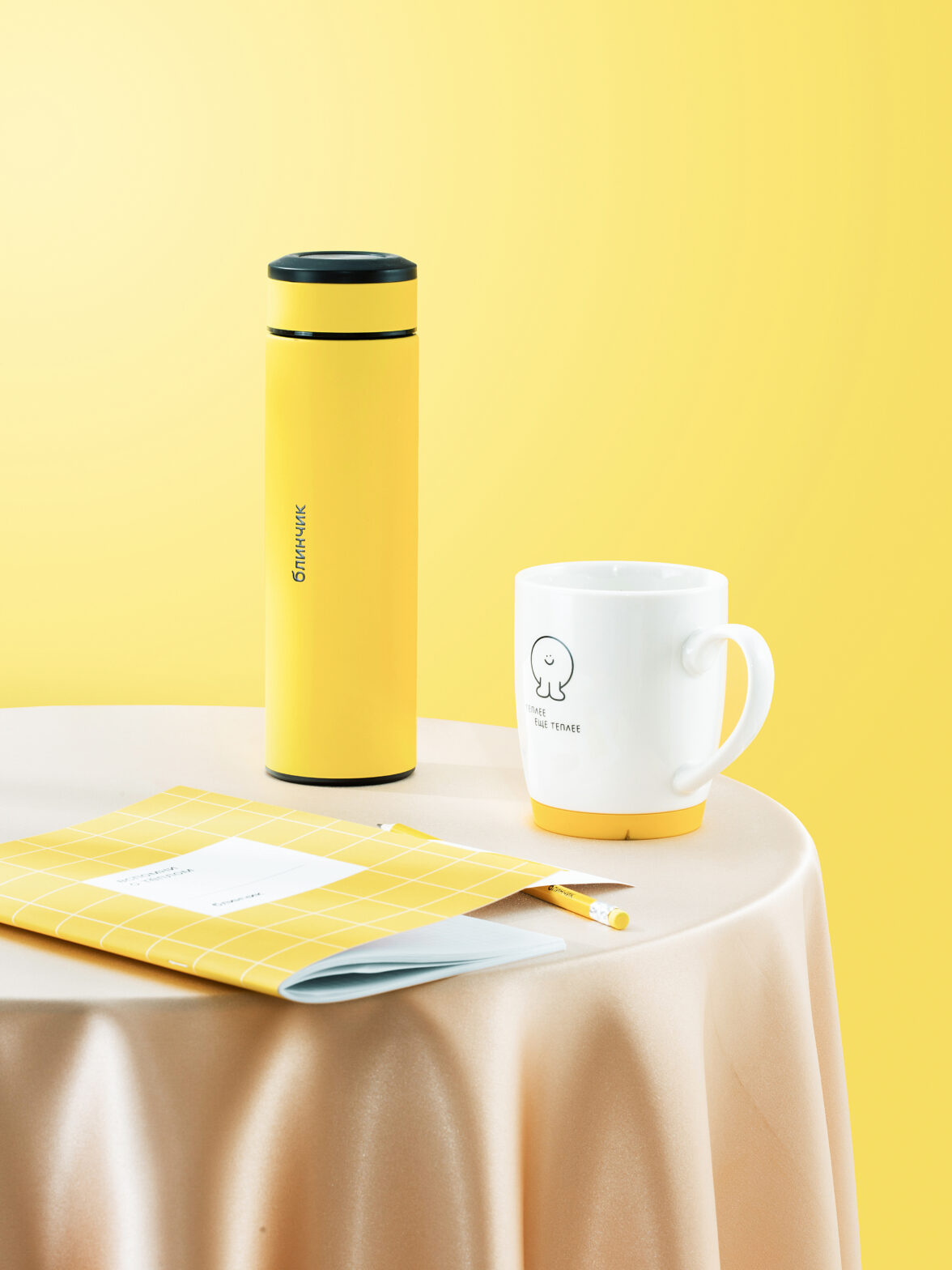 В коллекции мерча для сети блинных «Блинчик» нам удалось воплотить образ домашнего тепла и уюта, передать позитивные, солнечные и светлые эмоции в фирменном желтом цвете компании. Таким образом, получился пак актуальных и трогательных мелочей, призванных добавить ярких красок в повседневную жизнь получателей. В рамках программы лояльности сотрудники блинных «Блинчик» теперь получают приятные и полезные подарки от руководства, передающие ценности компании.