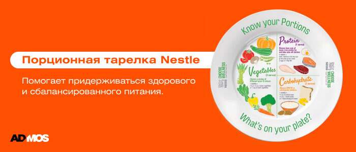 Компания Nestle решила вопрос радикально и сделала уникальный мерч — порционную тарелку, на которой уже есть схема правильной порции. Остаётся только заполнить её реальными продуктами и питаться вкусно и полезно каждый день, постепенно формирую необходимую привычку.
