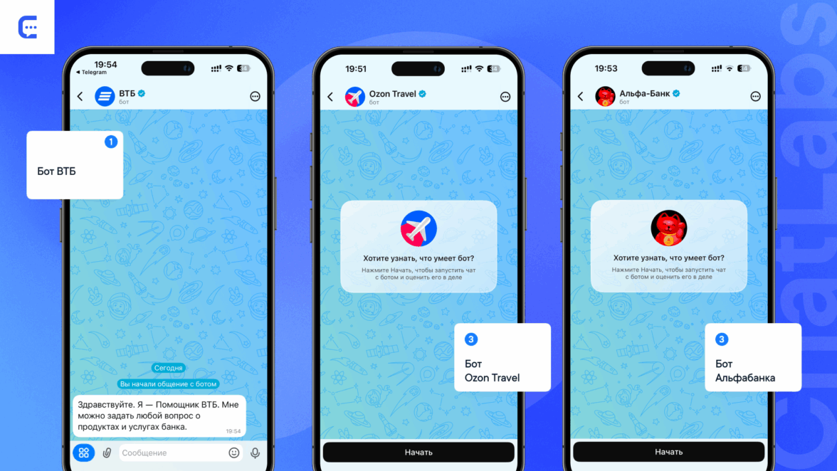 Хотите узнать, как запустить digital-спецпроект, автоматизировать продажи с помощью чат-бота или создать целый веб-сервис? Просто оставьте заявку в Телеграм @chatlabs_manager или на почте hi@chatlabs.ru.
