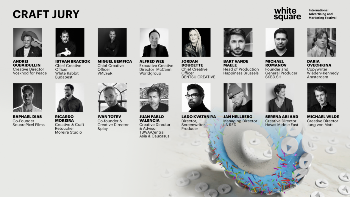 Белый Квадрат / White Square, один из признанных в профессиональном сообществе по всему миру фестивалей в сфере креативности, объявил состав жюри CRAFT, который будет оценивать кейсы в категориях Film Craft, Print & Outdoor Craft и Excellence In Radio & Audio. Прием конкурсных работ открыт и продлится до третьего мая, до 31-го марта действуют льготные условия участия.