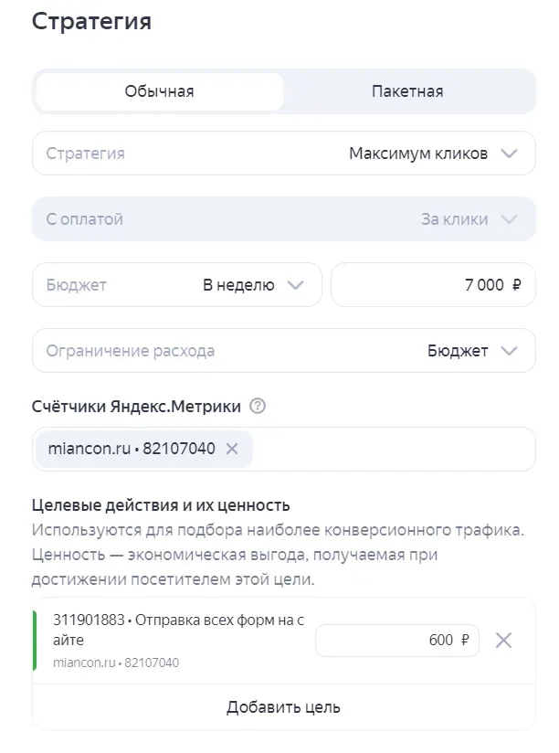 Провести качественную настройку целей для дальнейшего обучения рекламных кампаний.