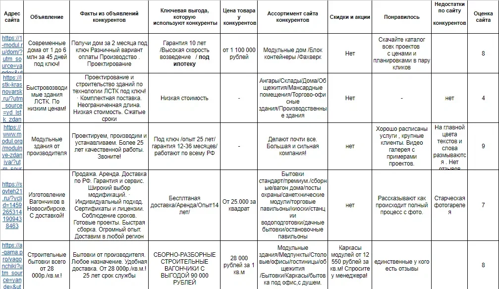 Анализ 5-ти конкурентов в нише «Модульные здания»