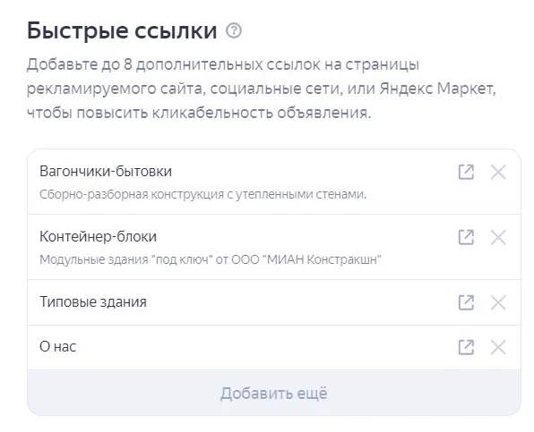 Неполное заполнение быстрых ссылок, которые помогают сделать объявления более заметными.