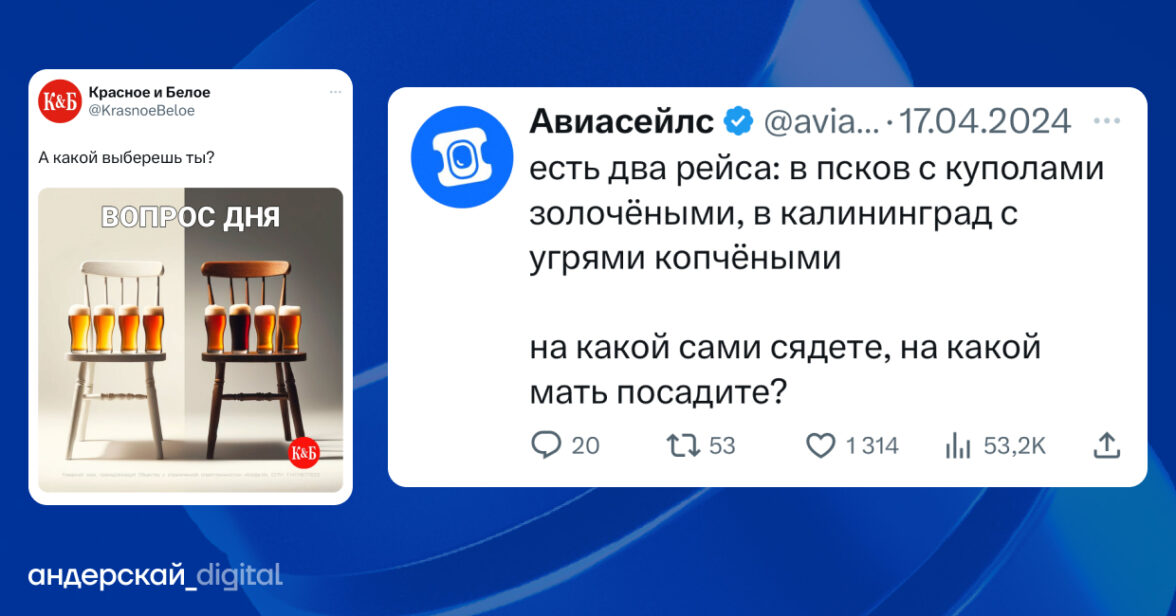 Что же делать брендам в этом царстве хаоса? Нужно ли искать мега креативного СММ-щика, который разбирается во всех слоях иронии? Разберемся на примере двух успешных в среде Х* компаний: Авиасейлс и Красное&Белое.