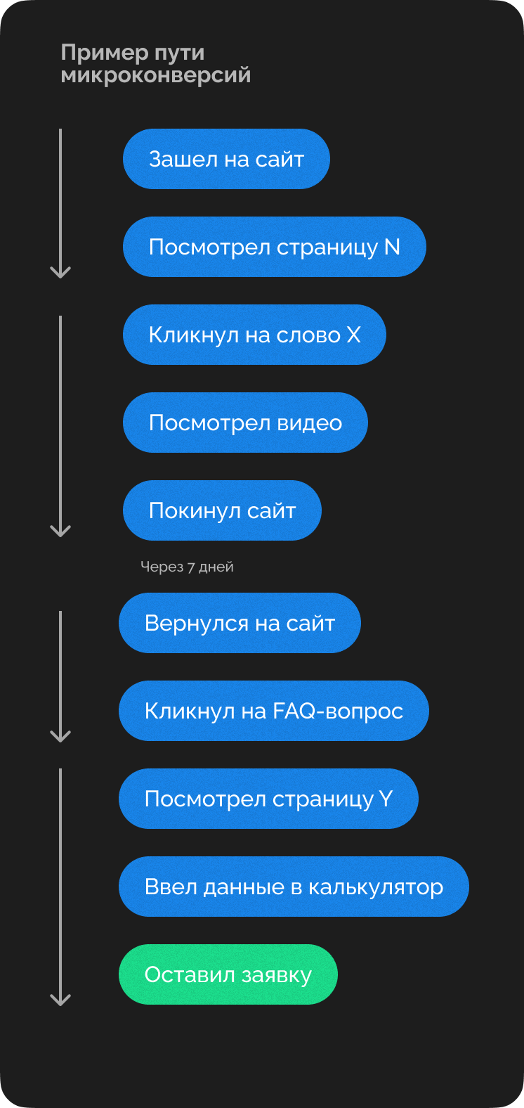 Каждый посетитель может выполнять недостаточно микроконверсий, но будет видно, что суммарно их много.