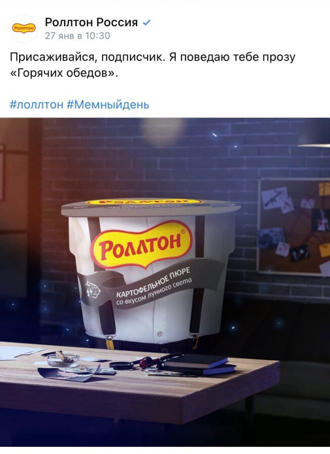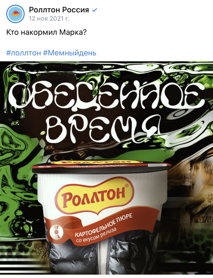 Если говорить про коммуникацию в VK, то мемы здесь — это один из главных интересов аудитории, про это рассказывает и сам VK, ставя в пример то, что делает «Роллтон». Поэтому в целом мемы могут подойти всем брендам, но это вопрос креатива и подачи.