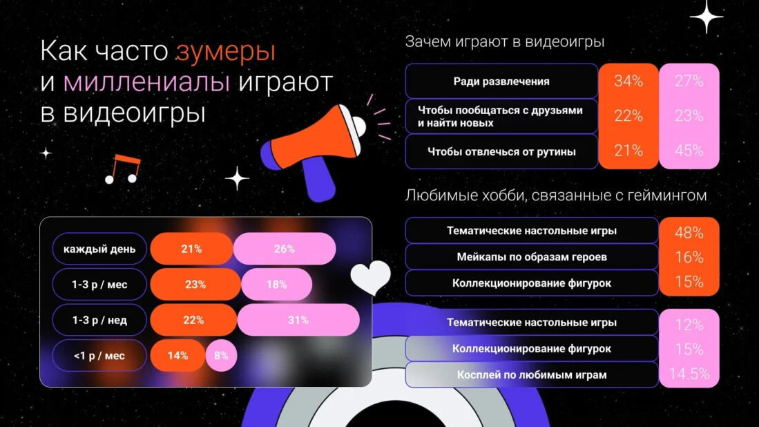 для 45% миллениалов видеоигры — попытка отвлечься от рутины, 34% зумеров играют ради развлечения.