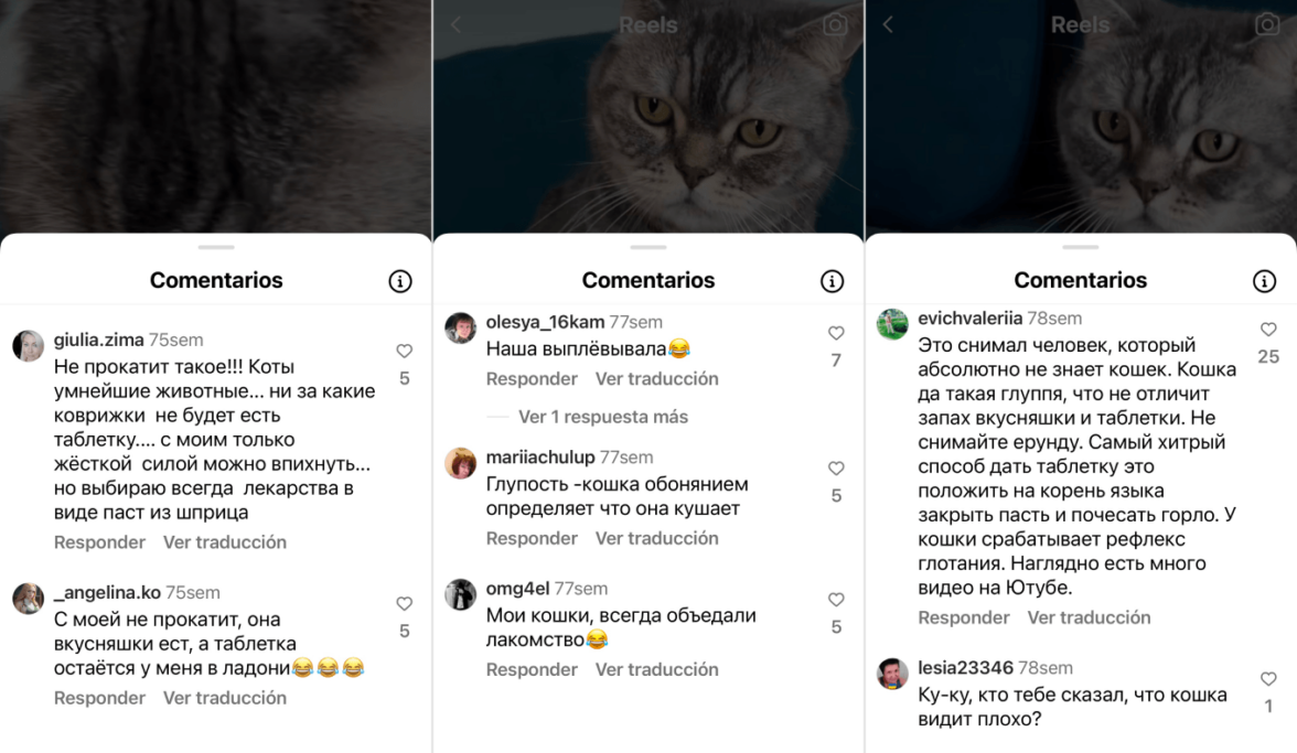 С негативом в Instagram* столкнулась хозяйка кошки Бэнни после публикации рилс «Самый хитрый способ, как дать кошке таблетку». Это частая проблема для многих владельцев животных, поэтому видео завирусилось и набрало почти 25 тыс. реакций.