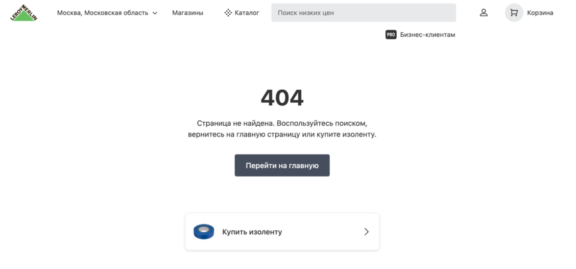 Страница с сообщением об ошибке на сайте «Леруа Мерлен»