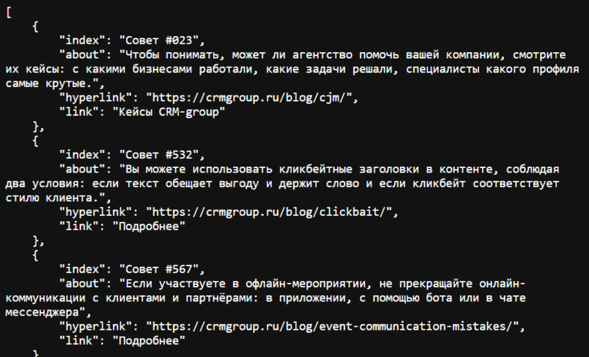 Написали небольшой обработчик JSON-файла — это позволит редактору самостоятельно добавлять, изменять или убирать советы.