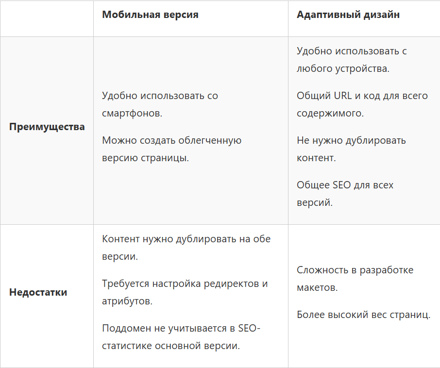 И у мобильной версии, и у адаптивного дизайна есть свои плюсы и минусы. Тем не менее, именно адаптивный подход сегодня считается стандартом веб-разработки и рекомендуется Google для соответствия Mobile First.