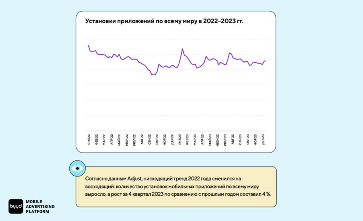 Глобальная медиана установок на тысячу показов выросла с 1,94 в 2023 году до 2,28 в первой половине 2024 года. Это свидетельствует о повышении эффективности рекламных кампаний.