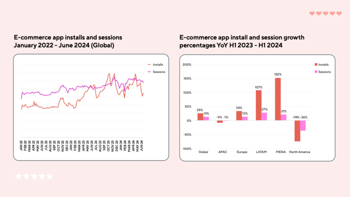 Установки приложений электронной коммерции увеличились на 25% в годовом исчислении в первой половине 2024 года. При этом количество сессий возросло на 13%.