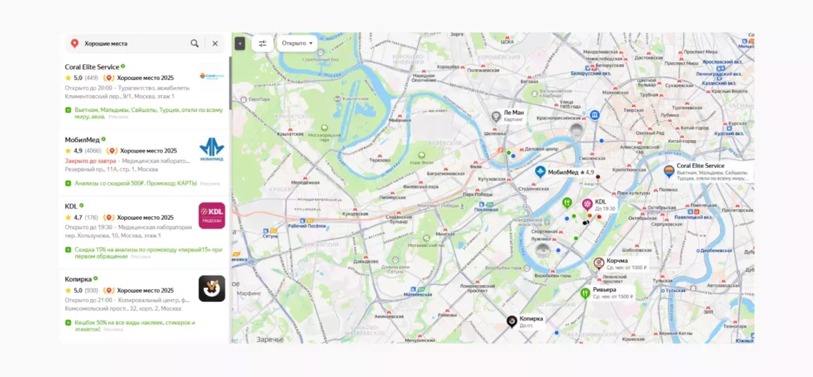 Яндекс.Карты — это мощный инструмент с ежемесячной аудиторией более 85 миллионов человек. Ежедневно пользователи обращаются к сервису для решения различных задач: от поиска магазина или места для ужина до целенаправленного изучения информации о компании или объекте с целью приобрести товар или услугу.