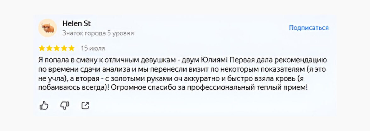 Пишите то, с чем вы действительно столкнулись, выражайте свои эмоции и делитесь личным опытом. Указывайте конкретные детали, которые помогут быть вашему отзыву максимально достоверным и полезным. Не перебарщивайте с эмоциями, особенно в плане похвалы, выражайте благодарность естественно и без преувеличений. Более подробно с правилами размещения отзывов на Яндекс Картах можно ознакомиться на платформе.